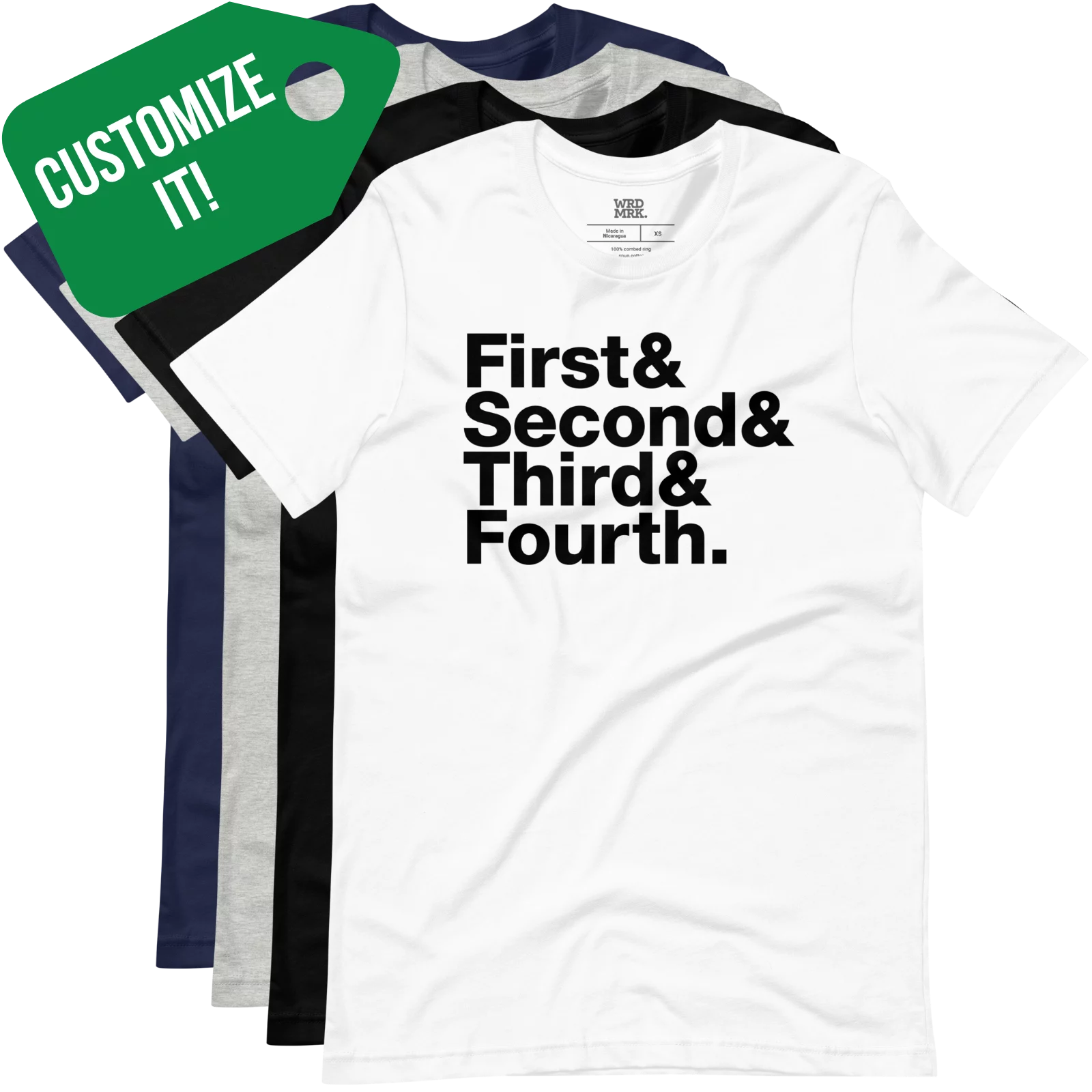 Custom &&& Helvetica list t-shirt generator with your 2 to 6 words or names!
