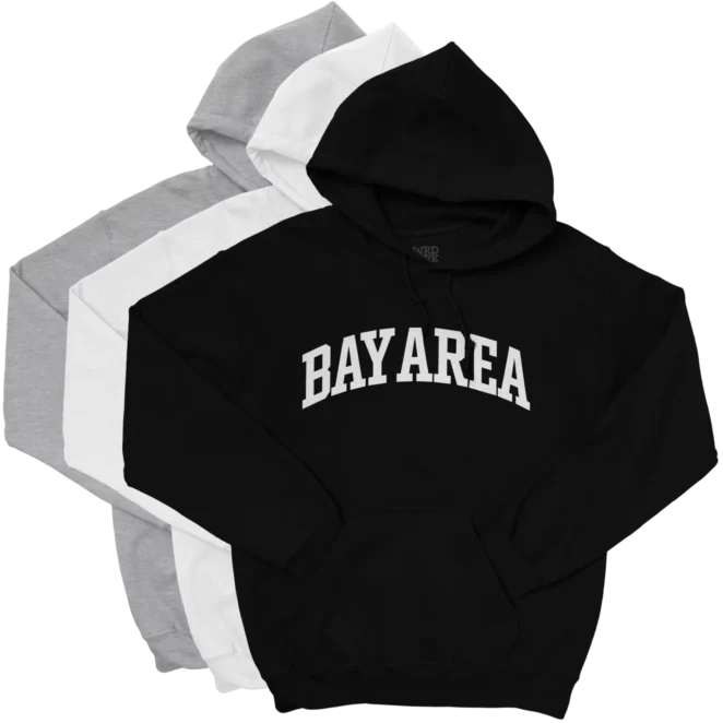 Show your love for the bay in the classic curved block letter graphic printed hoodie – grab yours today!
