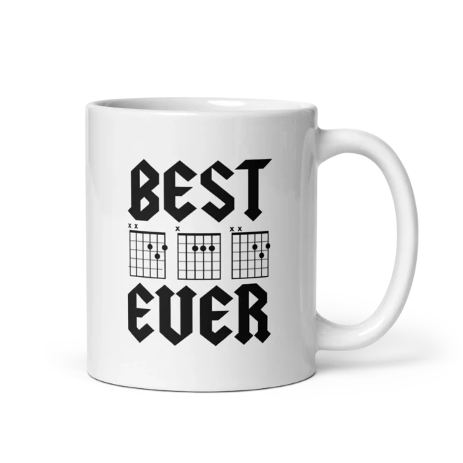 Celebrate the Best D-A-D Ever with this white ceramic mug, featuring guitar chord tabs that spell out ‘DAD.’ Available in three sizes, it’s the perfect pick for dads who rock!