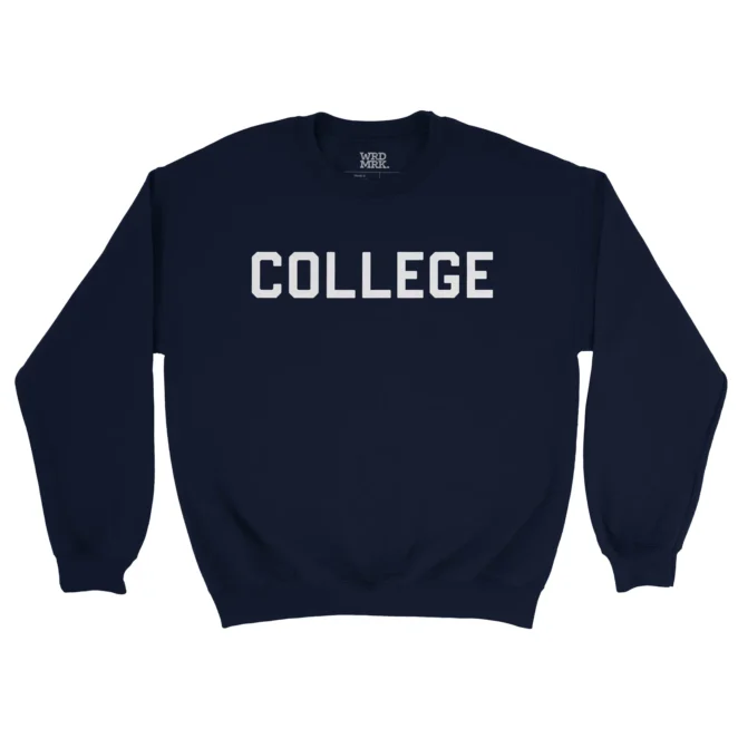 Navy blue COLLEGE sweatshirt, just like Animal House. A fun everyday classic, or an easy Halloween costume (just pair it with an empty or fake Jack Daniels bottle).
