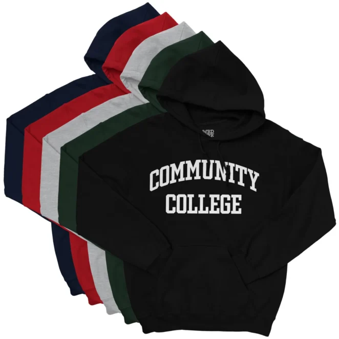 Show your love and support for junior and community colleges in this classic arched graphic design hoodie.