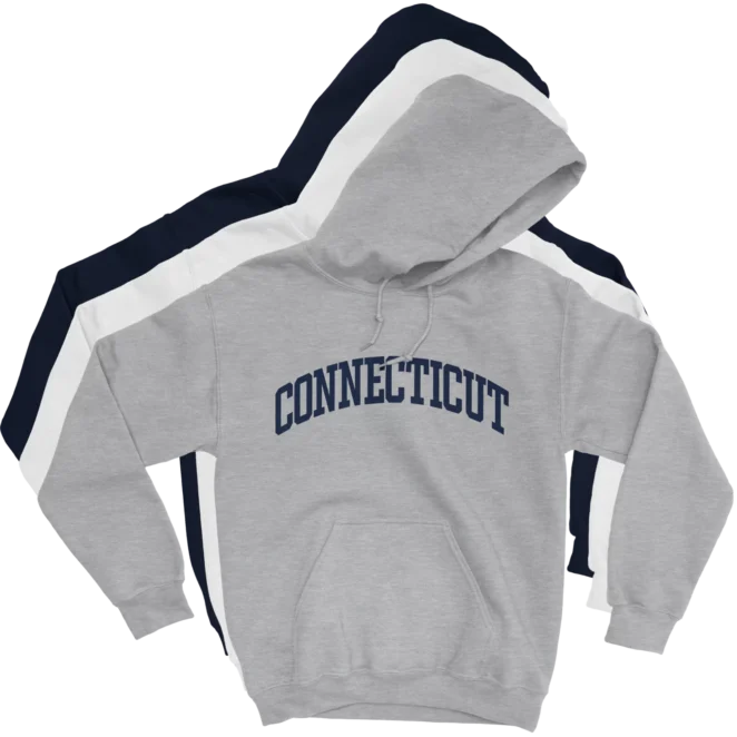 Whether catching the breeze at Mystic Seaport or grabbing a slice of New Haven’s famous pizza, this classic cozy pullover hooded sweatshirt with a kangaroo pouch is your perfect Connecticut companion.