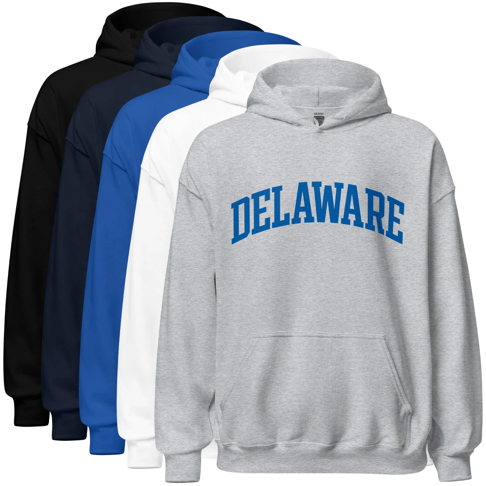 Timeless arched block letter Delaware hoodie with just the right amount of 302 pride.
