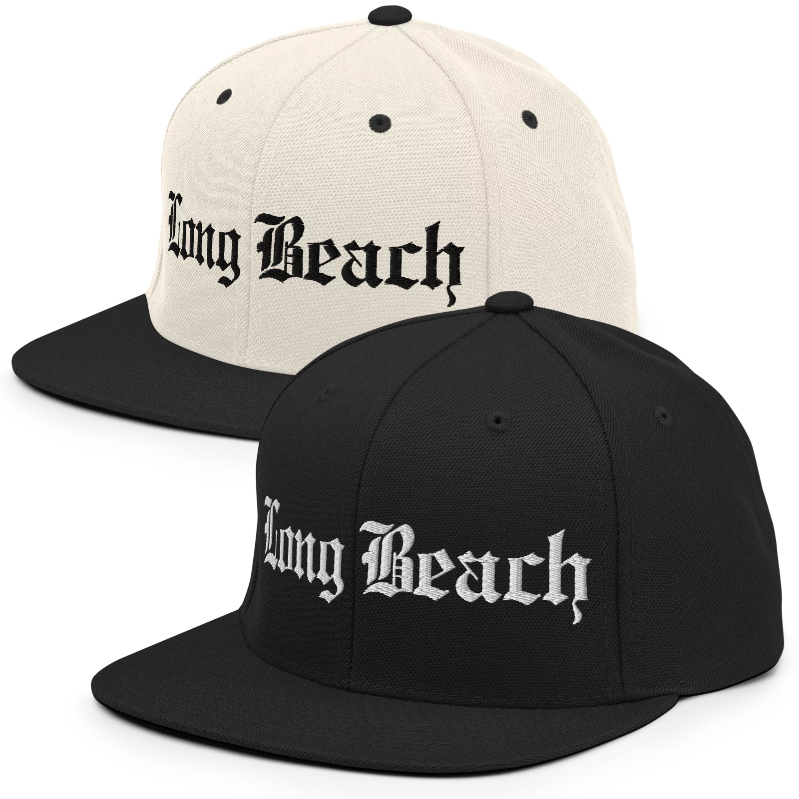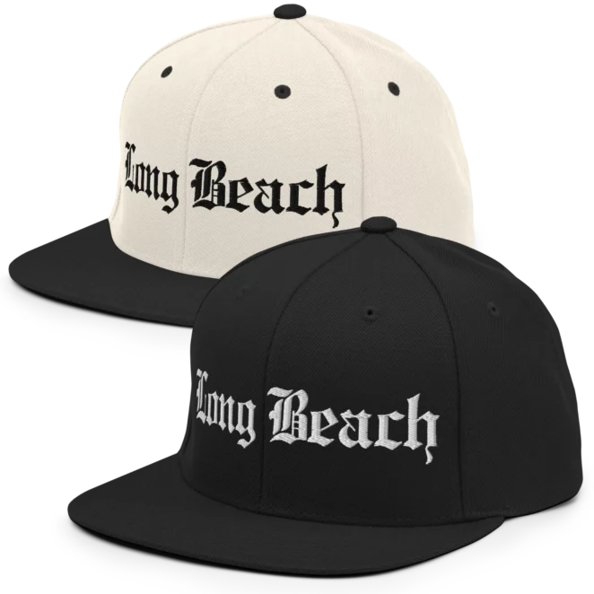 Rep the LBC with this snapback, featuring Long Beach in bold Old English embroidered lettering. A nod to ‘90s West Coast style, just like the legends wore. Available in two classic colorways.