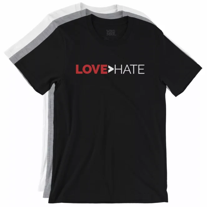 Be the first to review “Love>Hate T-Shirt” Cancel reply