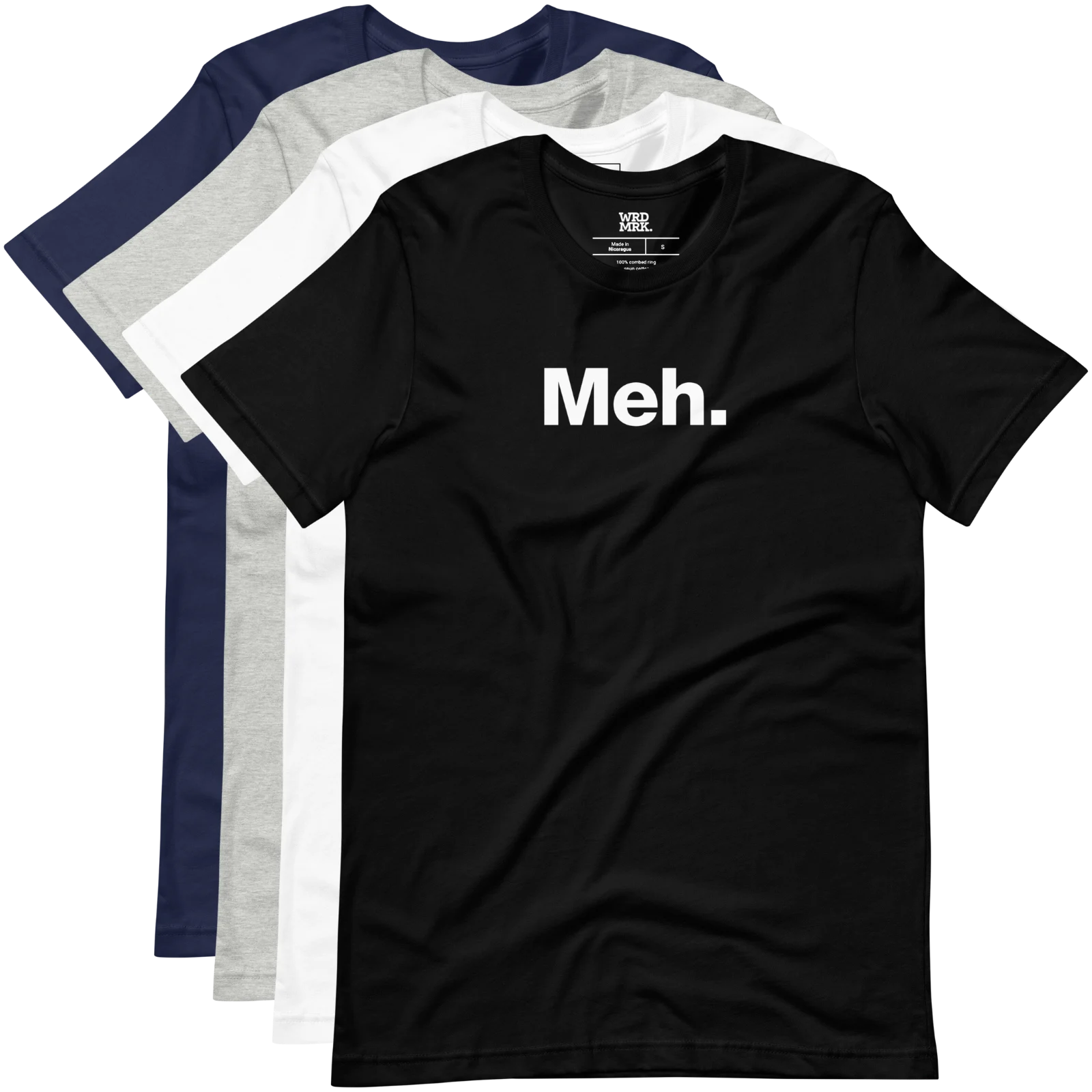 The ultimate shirt that says “Meh” for your peak whatever days. It’s printed, soft, and perfectly indifferent.