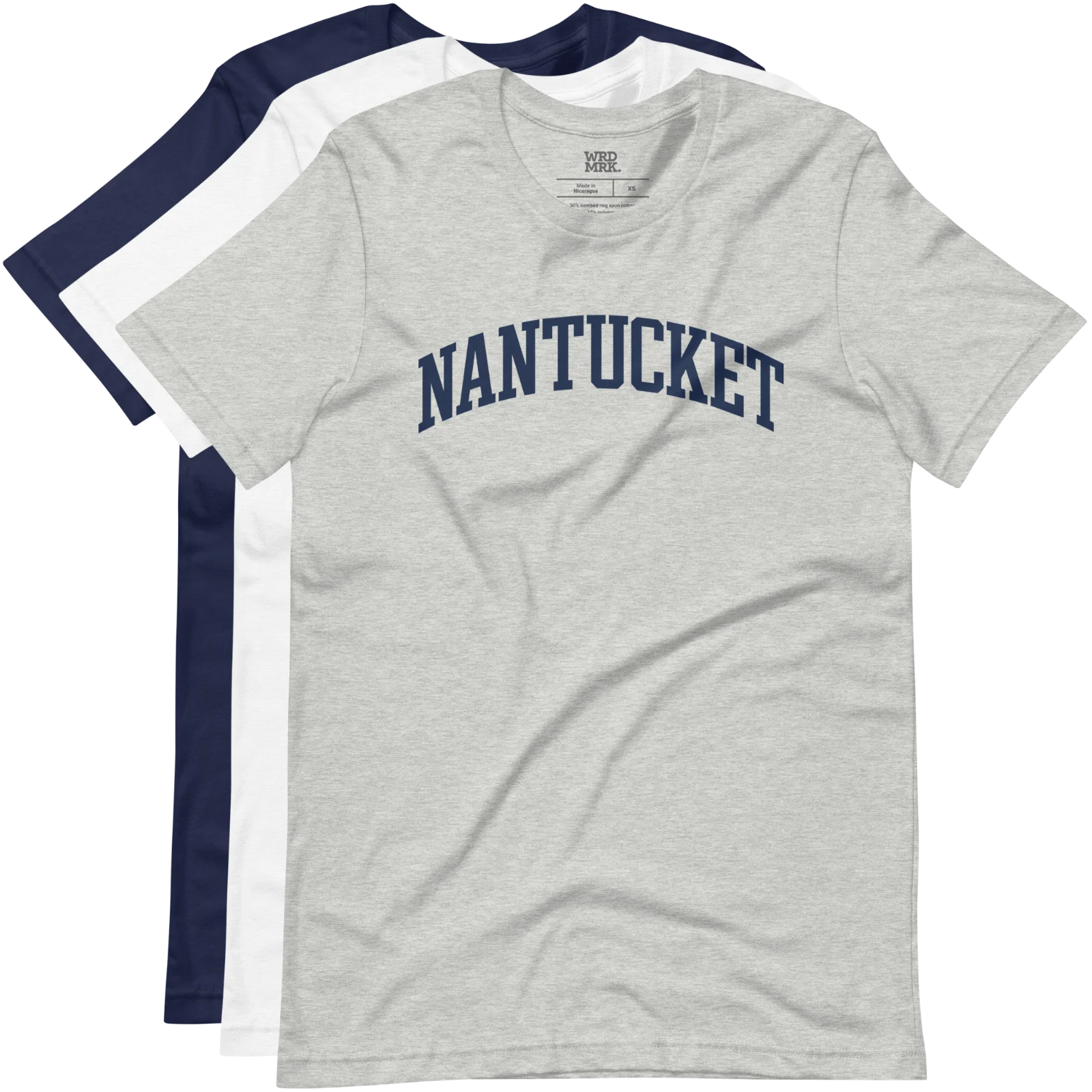 For those who know you never really rush on Nantucket. Timeless arched block letter typography printed on a soft, comfortable t-shirt.