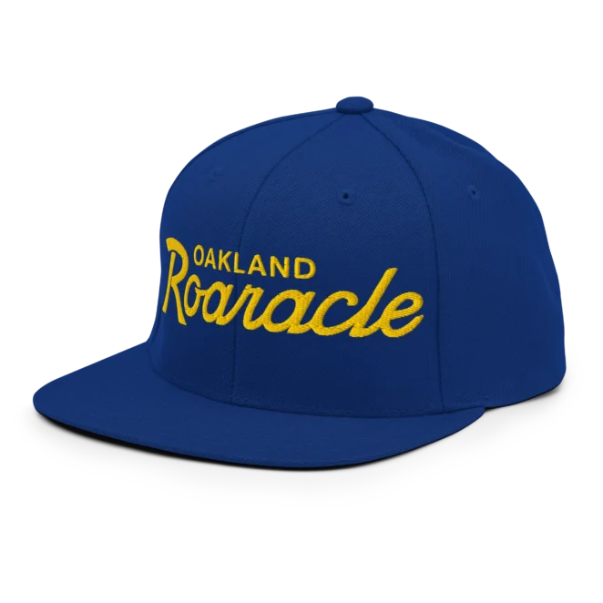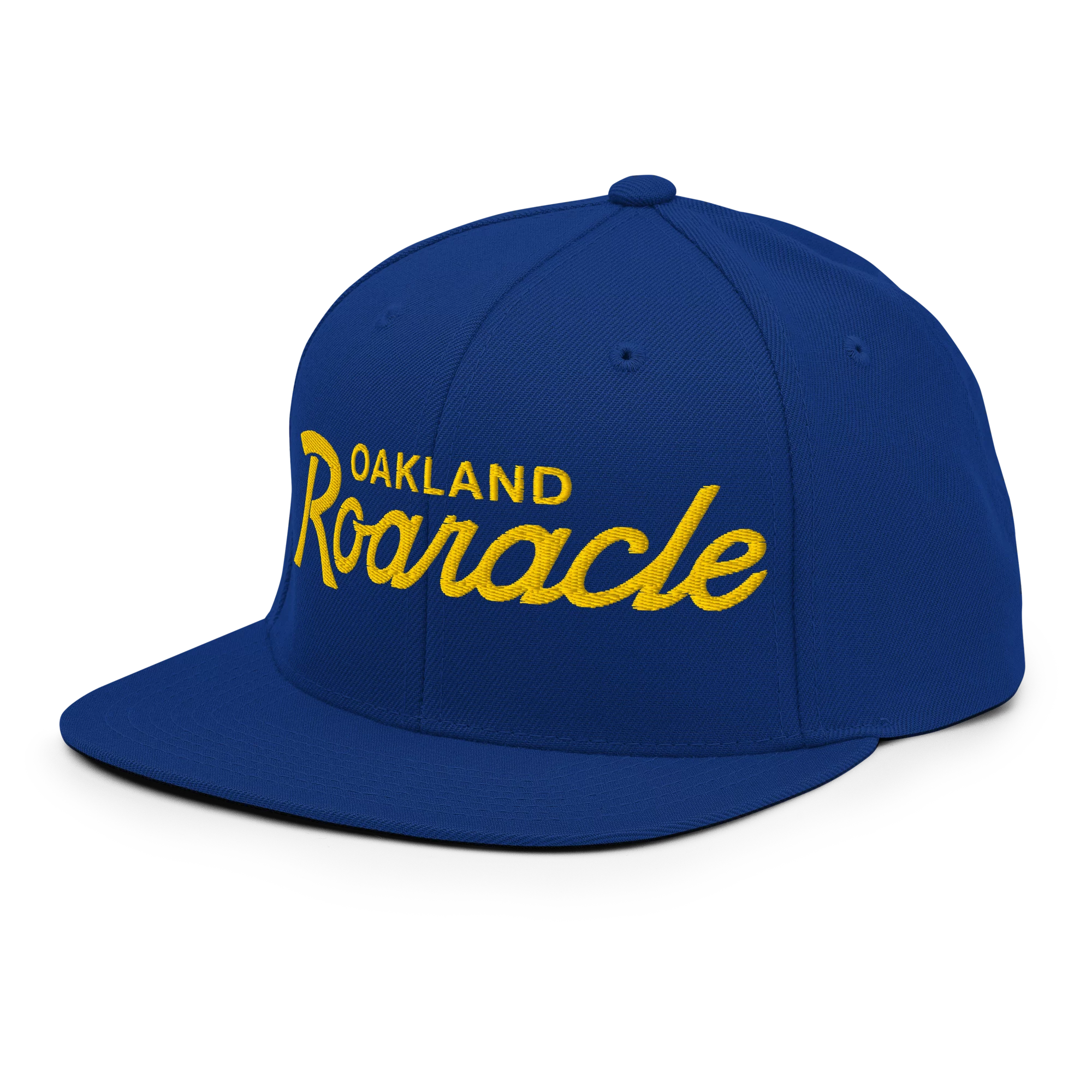OAKLAND Roaracle (aka Oracle) snapback hat with classic single line embroidered script. Show your love for The Arena and the Warriors dynasty years in Oakland.