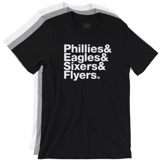Philadelphia sports teams tribute shirt that says “Phillies & Eagles & Sixers & Flyers.”