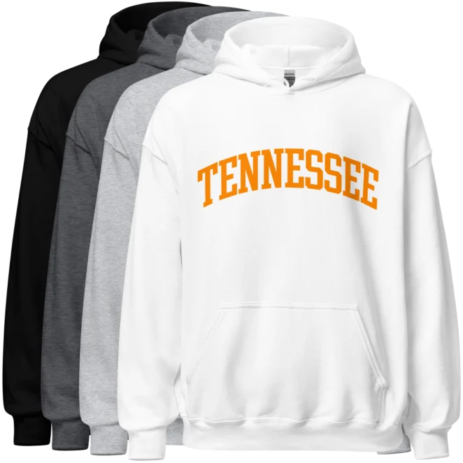 Wear your Tennessee pride with this cozy hoodie. Perfect for crisp nights in the Smokies or a stroll down Broadway in Nashville, this sweatshirt features a classic “TENNESSEE” varsity style arched graphic.